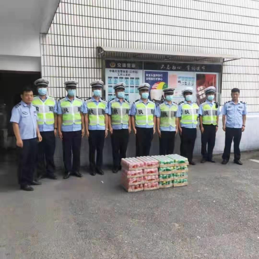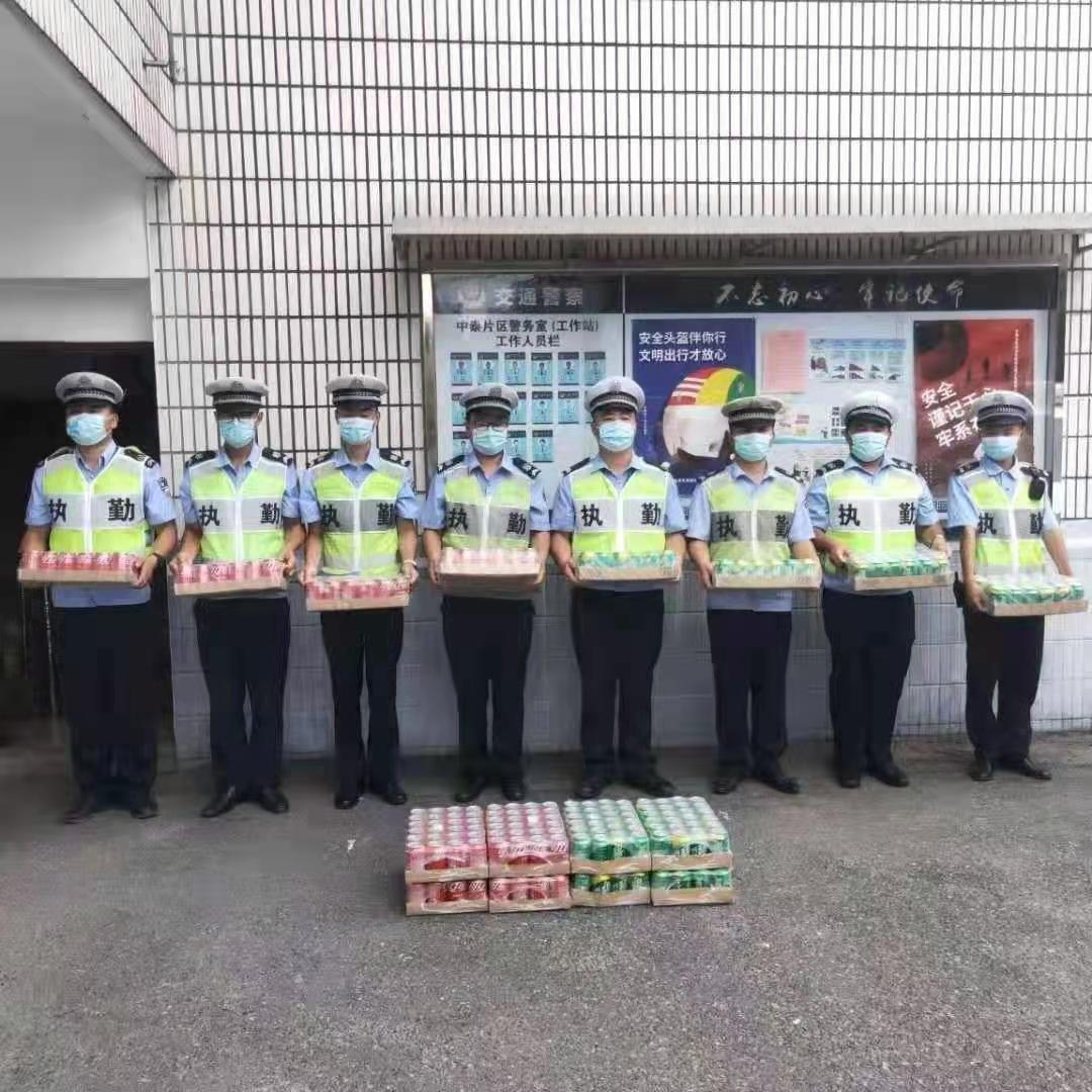 8月21日,中泰街道城管中隊副隊長(cháng)王哲、中泰交警工作站站長(cháng)王平、指導員應海松一行慰問(wèn)高溫下堅守崗位的民泰隊員。