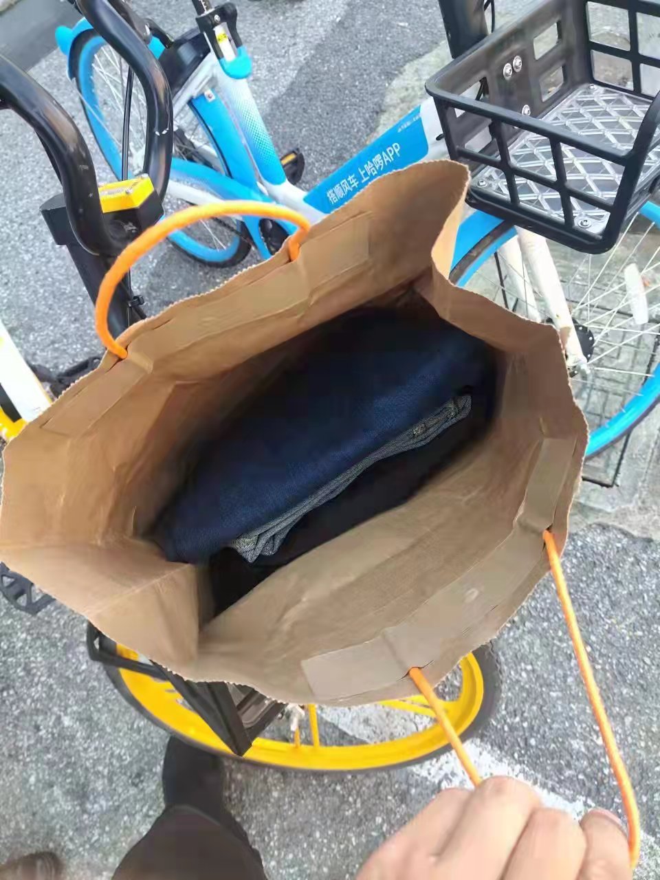 當天9:30,張陽(yáng)巡邏到年家浜路康沈路路口時(shí),發(fā)現路邊一輛共享單車(chē)車(chē)筐里有一個(gè)袋子,周?chē)鷽](méi)有人。