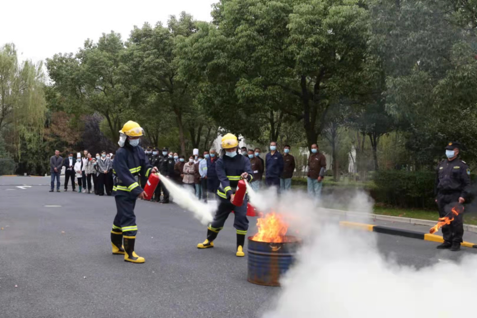 13:30,消防演練正式開(kāi)始,項目組長(cháng)許志剛向大家介紹不同類(lèi)型消防器材的功能作用,講授一旦發(fā)生火情,如何正確地報警、疏散、自救和逃生的常識,詳細講解手提式干粉滅火器、二氧化碳滅火器和消防水帶的使用方法,現場(chǎng)演示如何正確使用滅火器材進(jìn)行滅火。