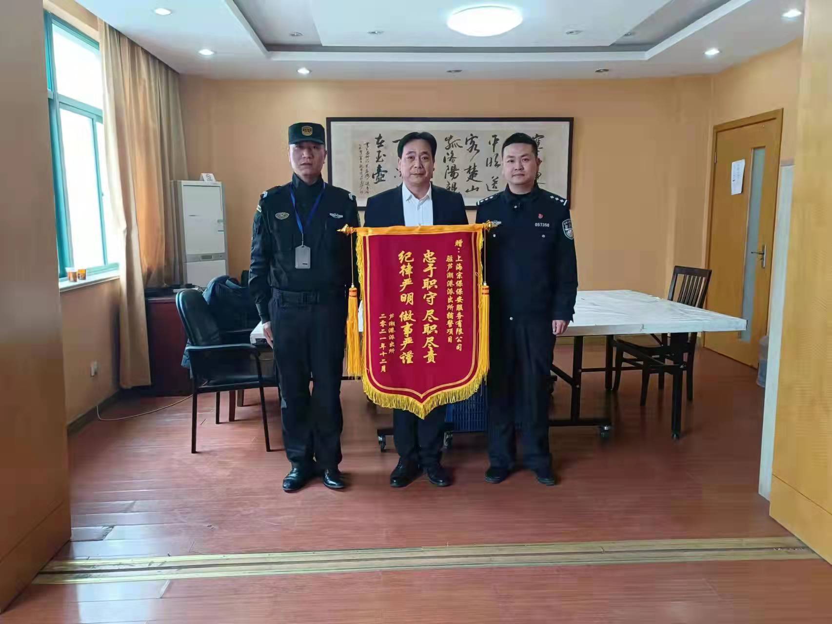 12月25日,宗保公司駐周浦輔警項目收到周浦派出所送來(lái)的一面繡有“忠于職守 盡職盡責”的錦旗,感謝宗保隊員良好的工作表現。