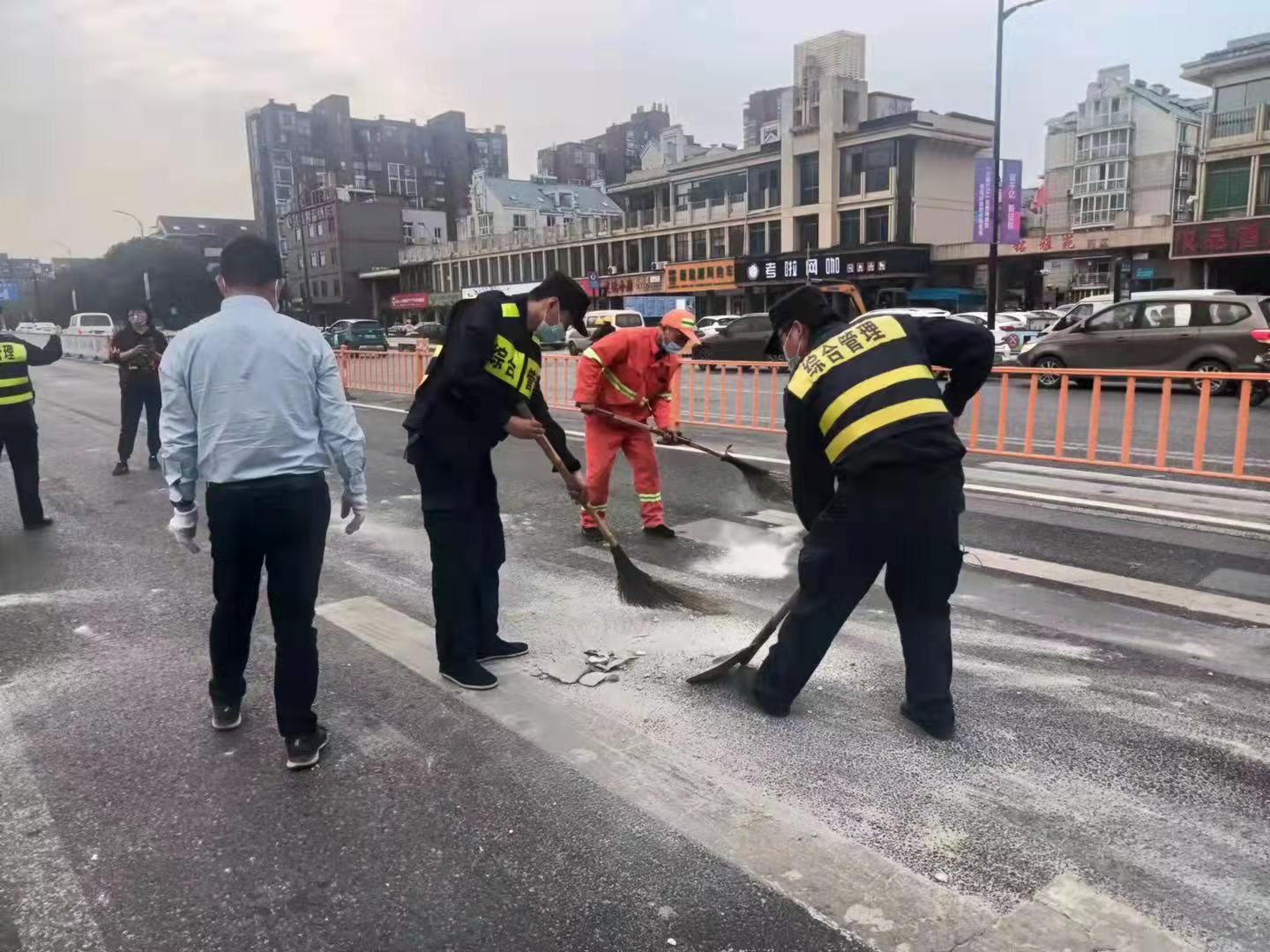 見(jiàn)此情形,大家趕緊上前,楊培發(fā)引導路過(guò)車(chē)輛減速慢行,其他隊員與隨后趕到現場(chǎng)的保潔員一起進(jìn)行清理。經(jīng)過(guò)20多分鐘的努力,路面很快被清掃干凈,道路恢復了通暢,此舉贏(yíng)得了過(guò)往市民群眾的稱(chēng)贊。