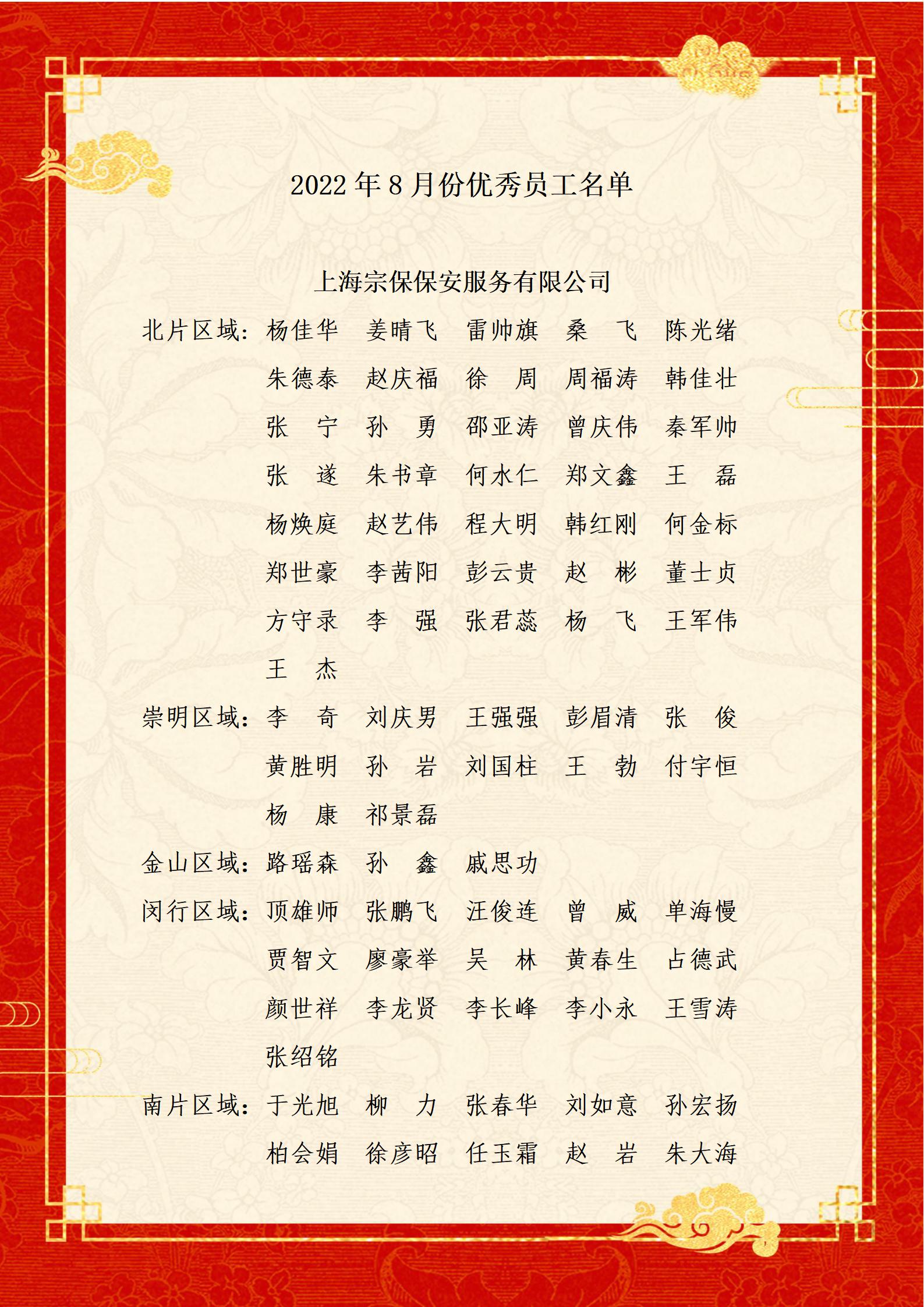 附:8月份優(yōu)秀員工名單