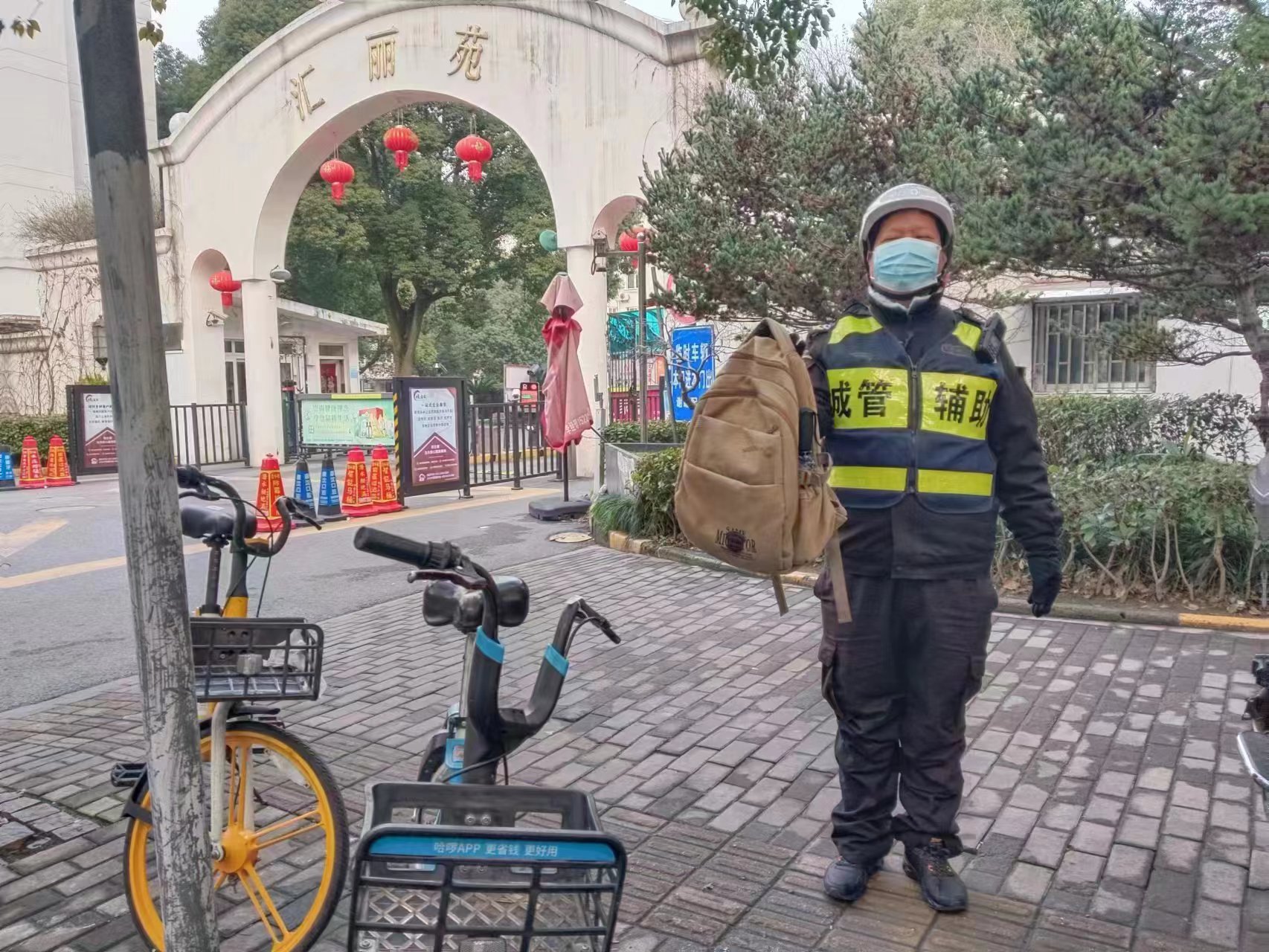 當日7:09,公司員工劉韌在關(guān)岳路匯麗苑門(mén)口巡邏時(shí),發(fā)現在一輛共享單車(chē)上有一個(gè)背包和一把雨傘,而單車(chē)周?chē)鷽](méi)人,便立即將情況上報班組長(cháng),并按指示在原地等待。