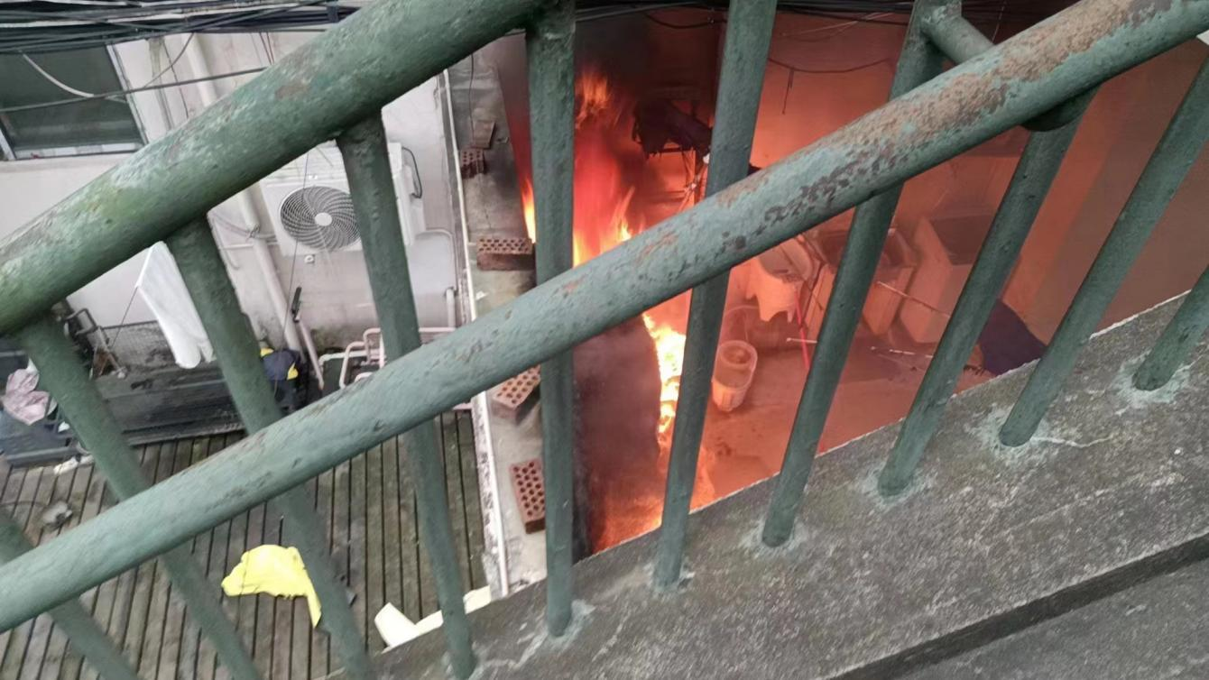 小區樓道起火 員工及時(shí)撲救