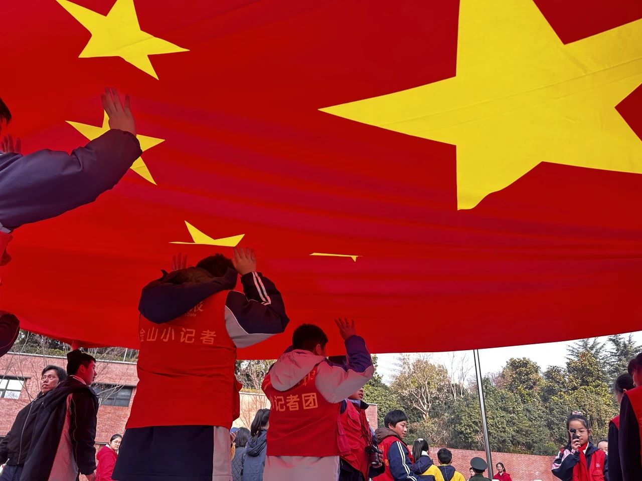 清晨旭輝的照耀下,升旗儀式正式開(kāi)始。國旗護衛隊的3位升旗手邁著(zhù)整齊的正步,舉著(zhù)國旗走向升旗臺。在莊嚴的國歌聲中,五星紅旗冉冉升起,全體師生齊唱國歌,深情而莊重地注視著(zhù)五星紅旗,用嘹亮的歌聲表達對祖國深深的熱愛(ài)。