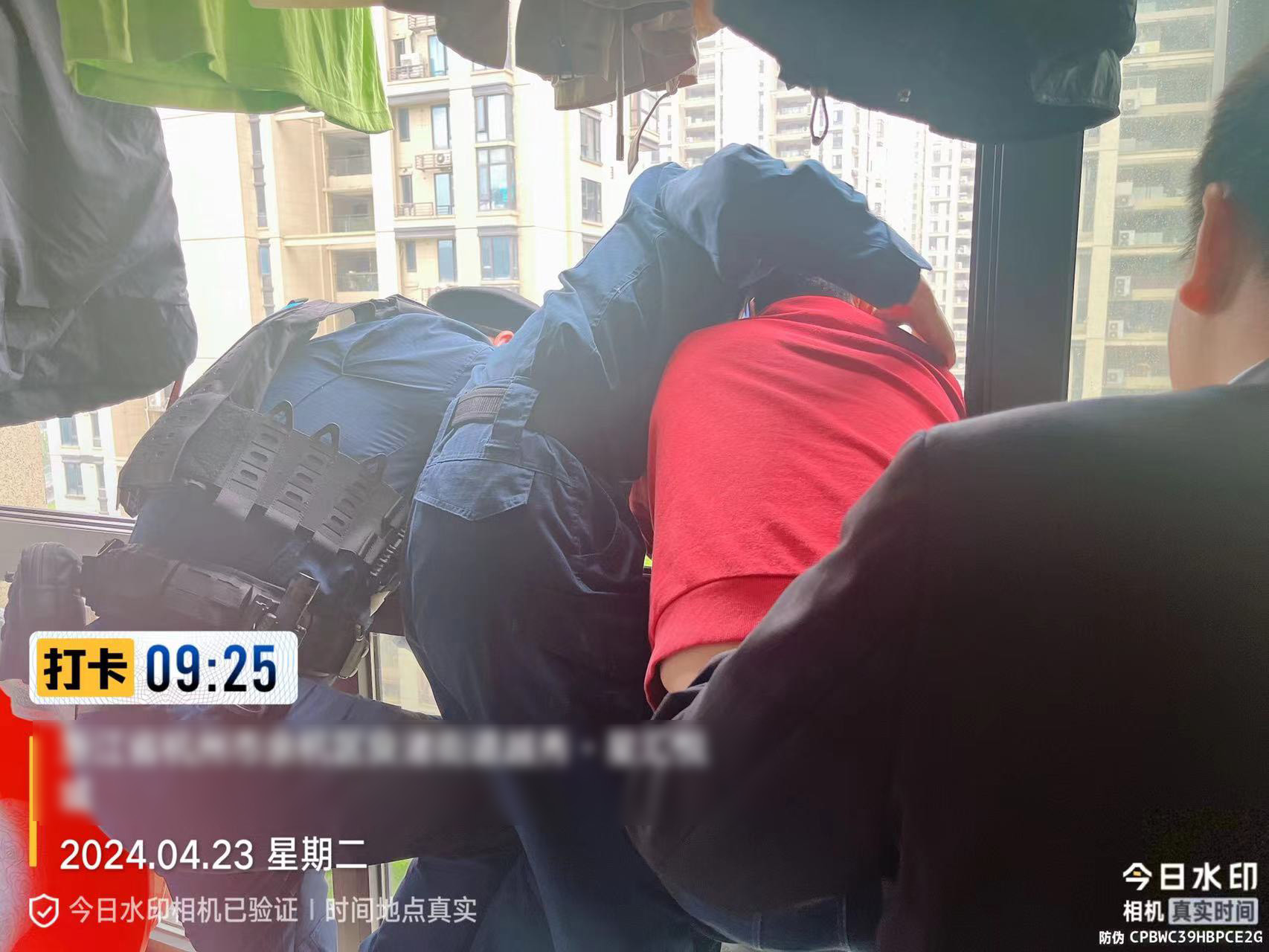 4月23日,浙江民泰公司駐杭州市余杭區良渚新城派出所項目員工合力成功救下欲跳樓輕生女子。