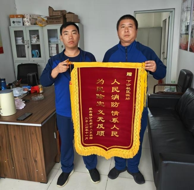 浦東新區航頭鎮下沙社區微站獲贈繡有“人民消防 情系人民 為民除災 義無(wú)反顧”的錦旗