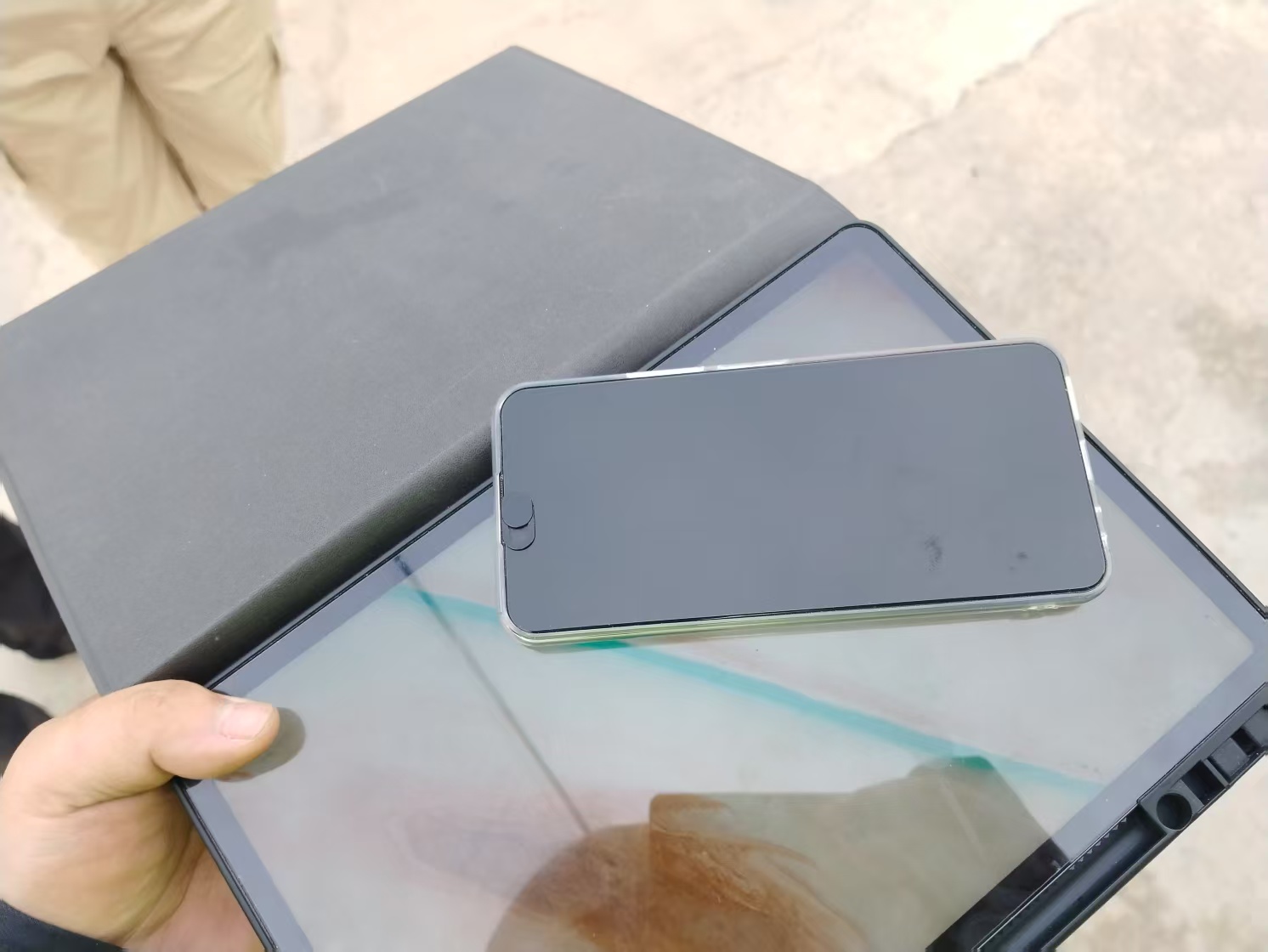 經(jīng)檢查,平板電腦套內夾層有銀行卡、身份證、現金及名片。班長(cháng)迅速通過(guò)名片聯(lián)系到失主,并約定見(jiàn)面地點(diǎn)。