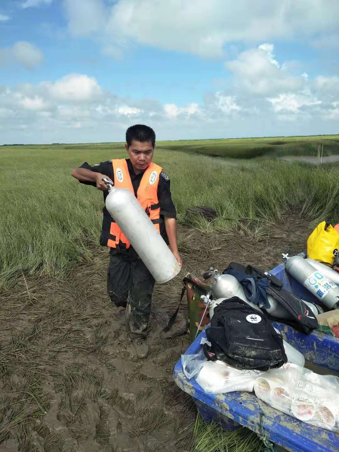 一是潮水。灘涂作業(yè),影響最大的就是潮汐。漲潮、退潮快。平靜的海水蘊含著(zhù)重重危機,漲退潮水流極快,隊員不提前準備,根本跑不及潮水。大潮時(shí)間短。灘涂作業(yè)潮水退不盡,無(wú)法作業(yè),必須利用大潮期潮水完全退去的空檔實(shí)施。