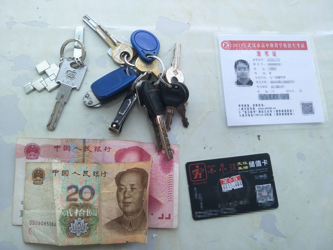 經(jīng)民警開(kāi)包檢查:內有現金120元,準考證一張,購物卡一張,衣服、食品等物品。