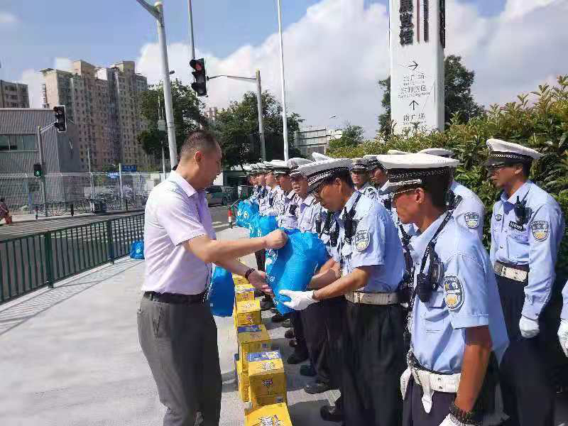 自7月上旬入伏以來(lái),上海、浙江、安徽等地的氣溫持續升高。為切實(shí)保障一線(xiàn)隊員的身體健康,確保各項工作任務(wù)正常順利開(kāi)展,宗保公司董事長(cháng)馮中保、總經(jīng)理晏軍等公司高層領(lǐng)導頂高溫、冒酷暑,帶著(zhù)關(guān)心和問(wèn)候,先后奔赴上海、浙江、安徽黃山等項目所在地,為持續奮戰堅守在一線(xiàn)崗位的宗保員工們送上夏季防暑降溫用品,并向他們表示衷心地感謝和誠摯的慰問(wèn)。