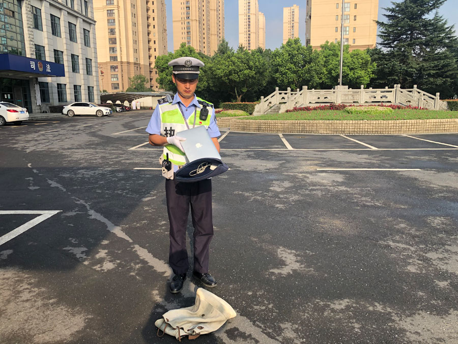 于是,張龍把背包就近放置在閑林街道辦事處保安室門(mén)衛處,并向工作人員說(shuō)明情況,然后繼續執勤等待失主回來(lái)找尋。大概在8:30早高峰即將換崗的時(shí)候,一位穿藍色外套的男士急匆匆地趕過(guò)來(lái),詢(xún)問(wèn)張龍和李丹是否撿到一個(gè)裝有蘋(píng)果電腦的包。張龍將失主帶到門(mén)衛處認領(lǐng),經(jīng)核對穿藍色外套的男士確實(shí)是失主本人后,就把包內電腦及其他貴重物品原封不動(dòng)地交還了失主。