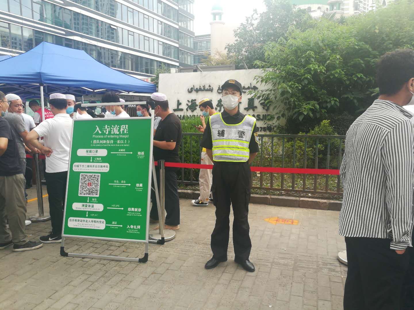 自新冠肺炎疫情暴發(fā)以來(lái),浦東清真寺一直處于封閉狀態(tài)。7月31日,迎來(lái)了伊斯蘭教重大節日—古爾邦節。此次是浦東第一個(gè)宗教場(chǎng)所恢復開(kāi)放,街道和派出所領(lǐng)導高度重視。宗保公司駐洋涇輔警項目接到任務(wù)后,選派10名精干隊員,配合民警維護節日現場(chǎng)秩序,嚴格控制人流密度,設立告示牌、一米線(xiàn)等標示。