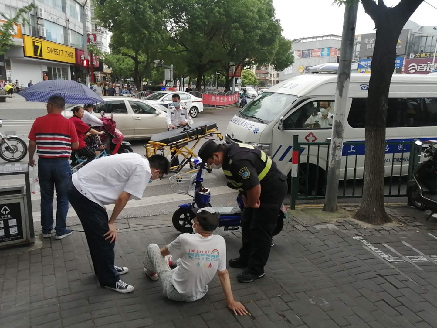 當天15:40左右,鄭世豪和陳睿巡邏到張楊北路清溪路交叉口時(shí),看到一位老人坐在地上,一輛電瓶車(chē)倒在一旁。見(jiàn)此情景,鄭世豪和陳睿急忙跑向前,詢(xún)問(wèn)老人受傷情況。老大爺說(shuō)自己騎電瓶車(chē)避讓行人不小心摔倒了,腿上、胳膊上擦破點(diǎn)皮不要緊,就是覺(jué)得有點(diǎn)頭疼,感覺(jué)腦子有點(diǎn)迷糊。