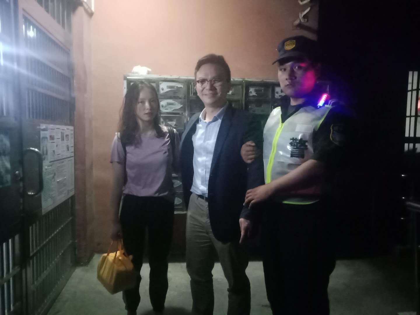 當日23:40,金橋交管輔警金葵巡邏隊員靳龍龍、周長(cháng)群在金葵路1115弄巡邏時(shí),發(fā)現一名女子攙扶著(zhù)一男子,行走十分困難。
