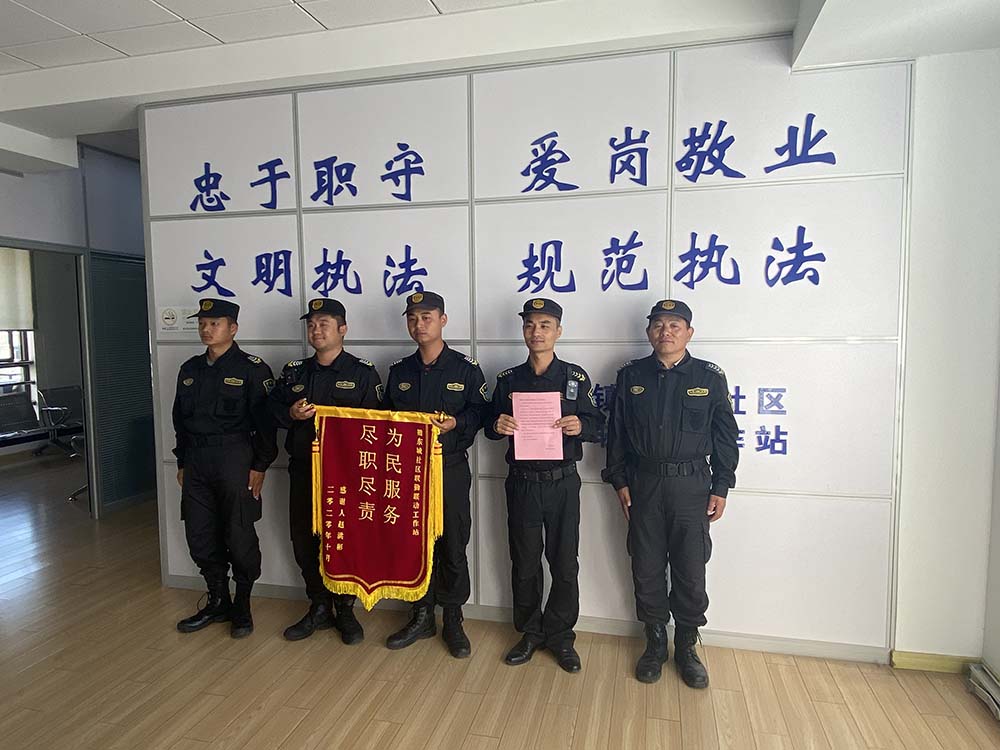 10月20日,一面繡有“為民服務(wù) 盡職盡責”的錦旗送到了宗保公司駐惠南鎮城管中隊項目隊員手中。