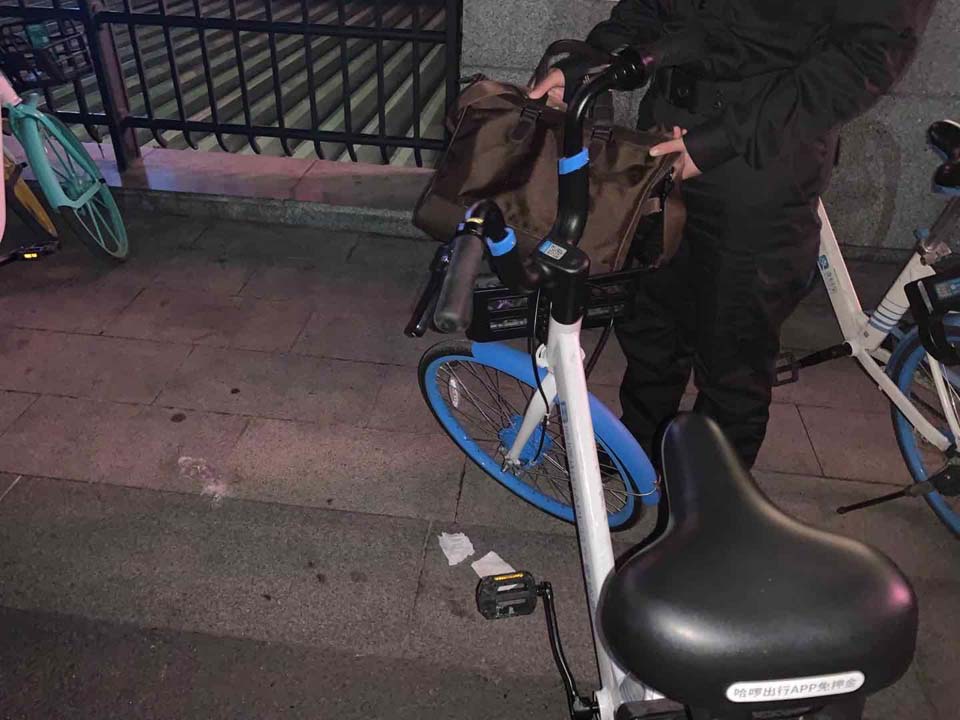 當天9:00左右,肖金柱在高科西路浦三路口擺放亂停放的共享單車(chē)時(shí),在車(chē)框里發(fā)現一個(gè)單間挎包,無(wú)人認領(lǐng)??紤]到失主會(huì )回來(lái)尋找,肖金柱便在現場(chǎng)一邊整理單車(chē),一邊耐心等待失主。